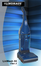 Lindhaus’ many years of experience in the manufacturing of professional carpet cleaners has lead to the creation of this revolutionary floor scrubber. Lindhaus manufactures the Lindwash 30 Class A machine with all the qualities and performance of large industrial scrubbers eliminating the bulky design, heavy weight and difficult manoeuvrability. This unique machine combines lightweight, agility, and practicality by utilizing simple water loading and unloading operations with the amazing power to remove the most stubborn dirt and grime. The custom designed motors are created exclusively for this machine by sister company Rotafil, a company world renowned for producing the highest quality motors: - High efficiency by-pass vacuum motor provides extraordinary performance of suction and air-flow - Universal brush motor controls the brush speed with perfect precision and provides overload protection with a reliable electronic system. - The dosing pump dispenses the exact amount of water to be uniformly distributed on the brush without wasted cleaning solution The soft scrubbing brush is designed to clean and protect most hard surfaces, a more aggressive brush is available for heavy duty cleaning requirements.
